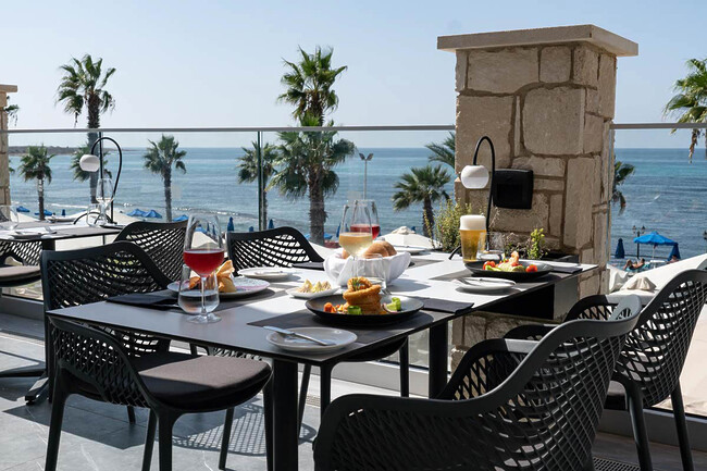 Our recently opened a la carte restaurant is located on the first floor of the pool bar offering a stunning view of the sea and breathtaking sunsets. The modern design together with the spacious outdoor areas offer a cozy, relaxing atmosphere.
